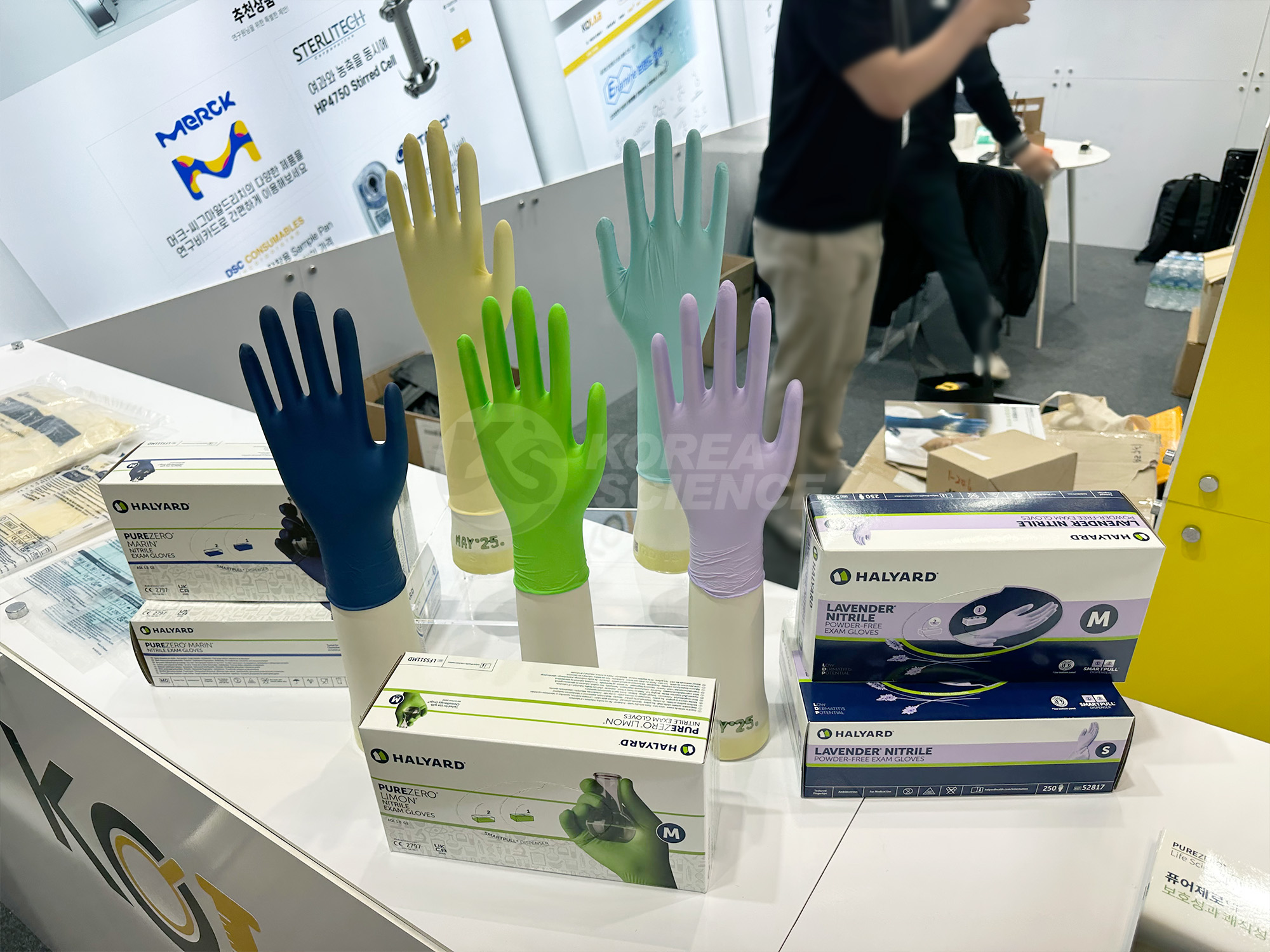 이번 전시에서는 다양한 색상의 니트릴 장갑 라인업을 중심으로